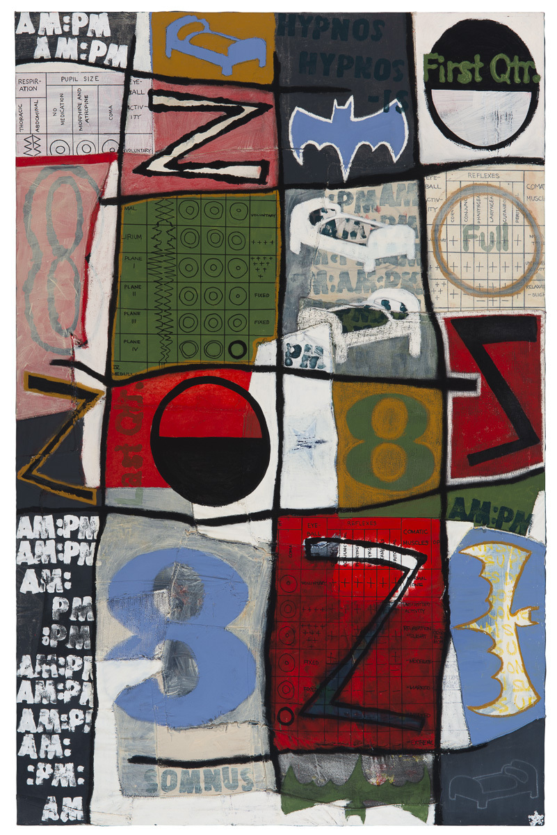 Acrylic, oil stick, and permanent marker on composite ground