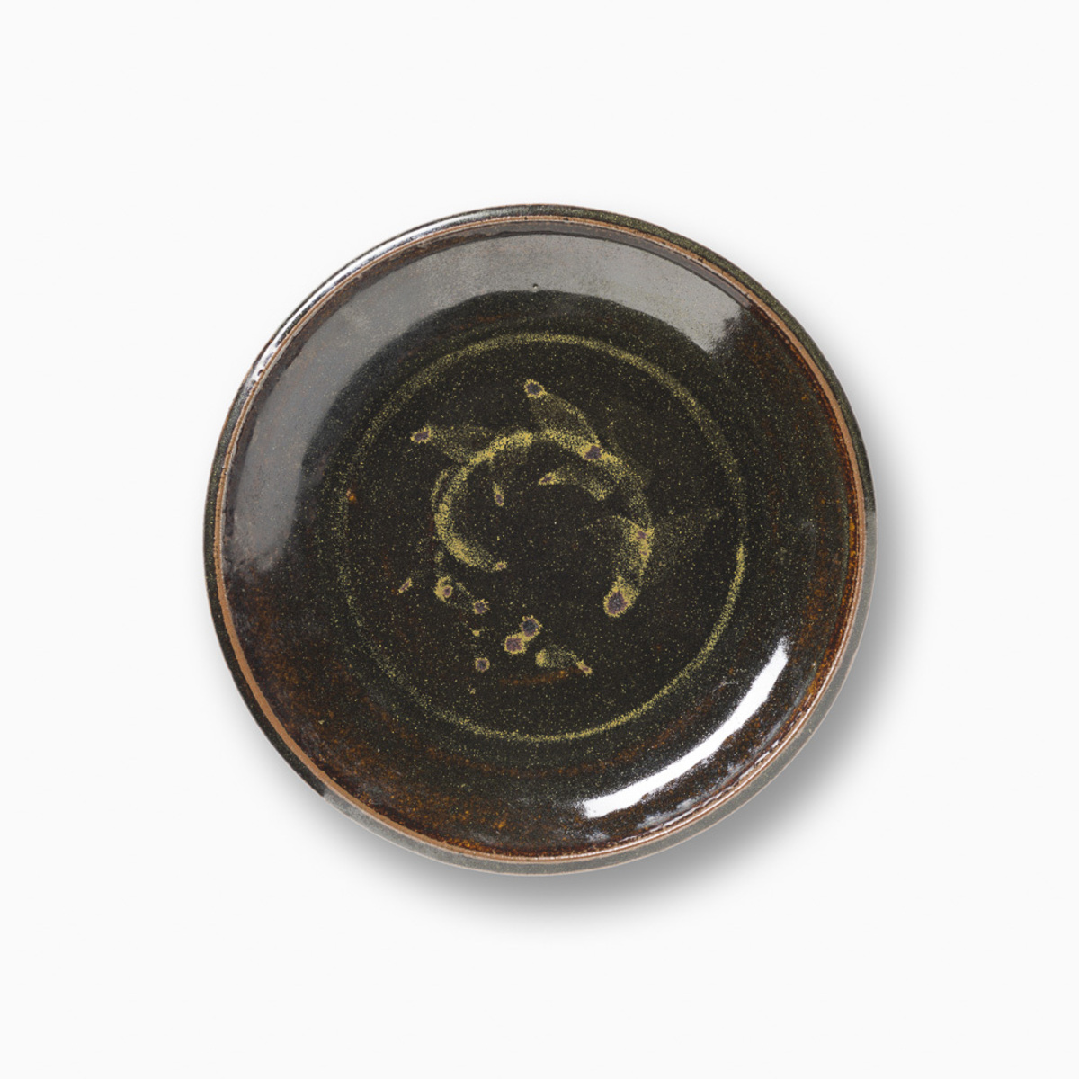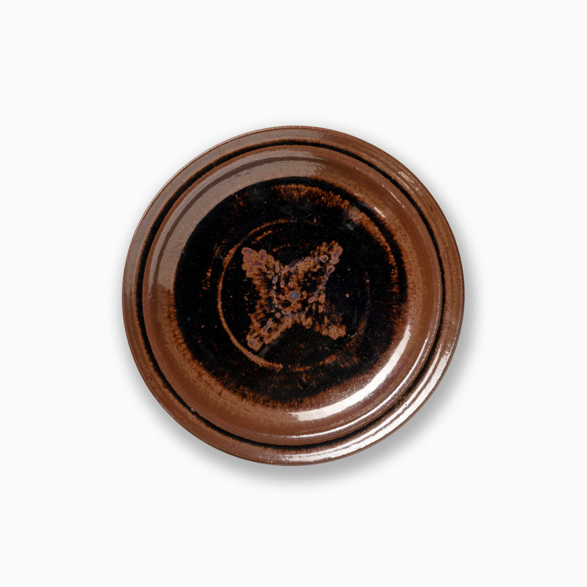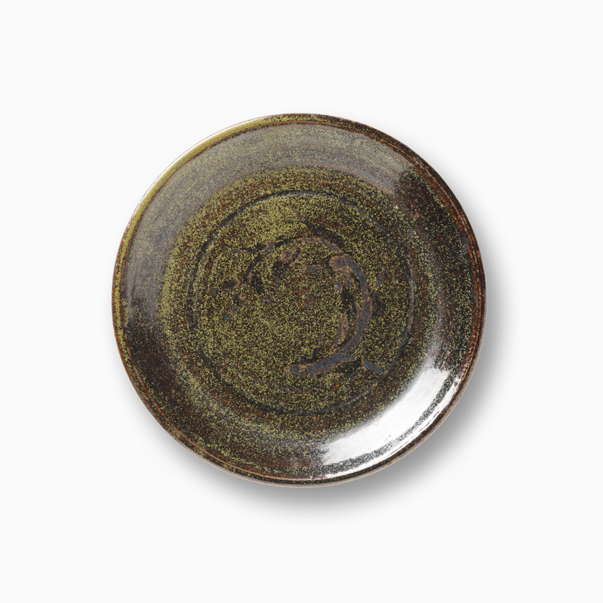 Dinner Plate with Tea Leaf Glaze and Pattern Decoration