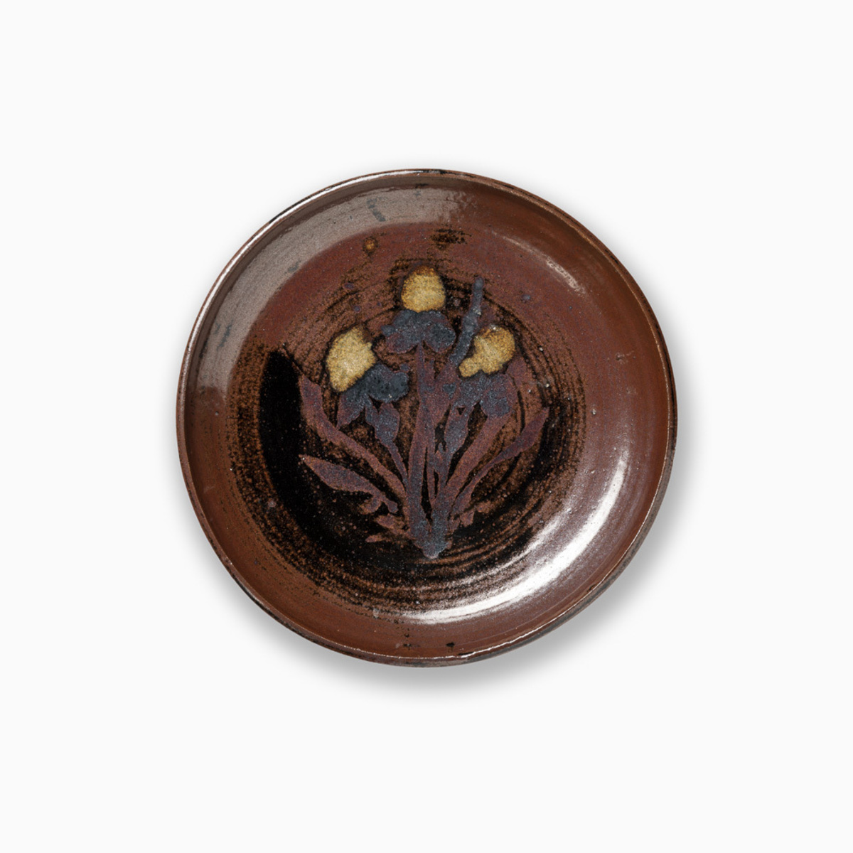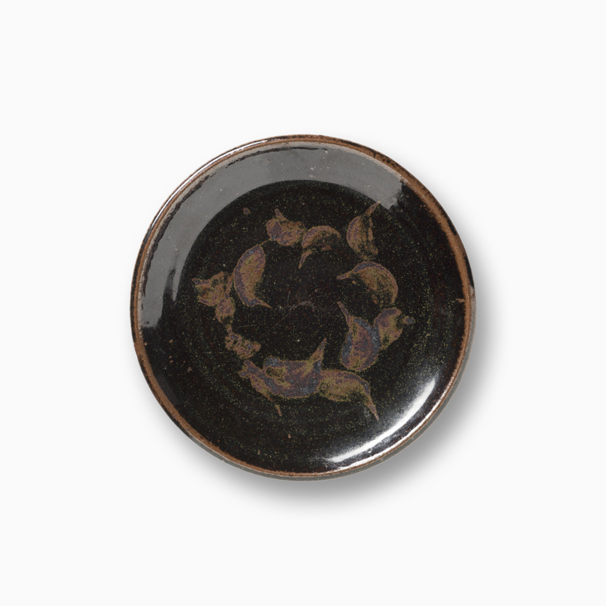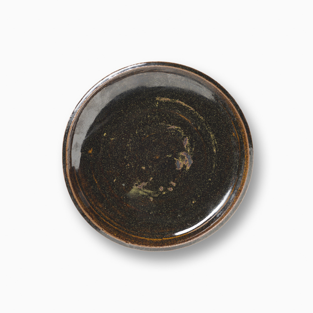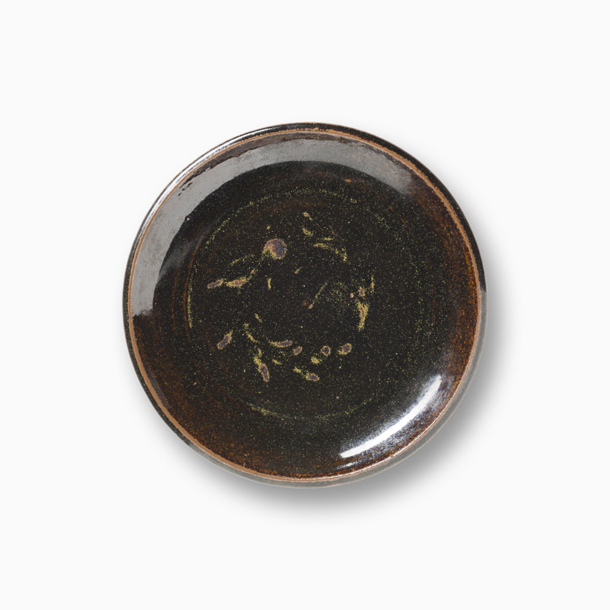 Dinner Plate with Tea Leaf Glaze and Pattern Decoration