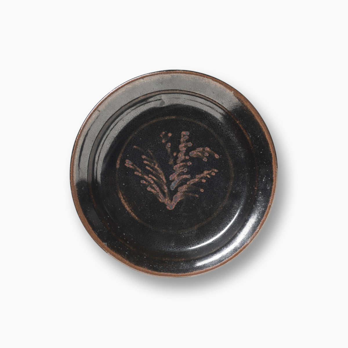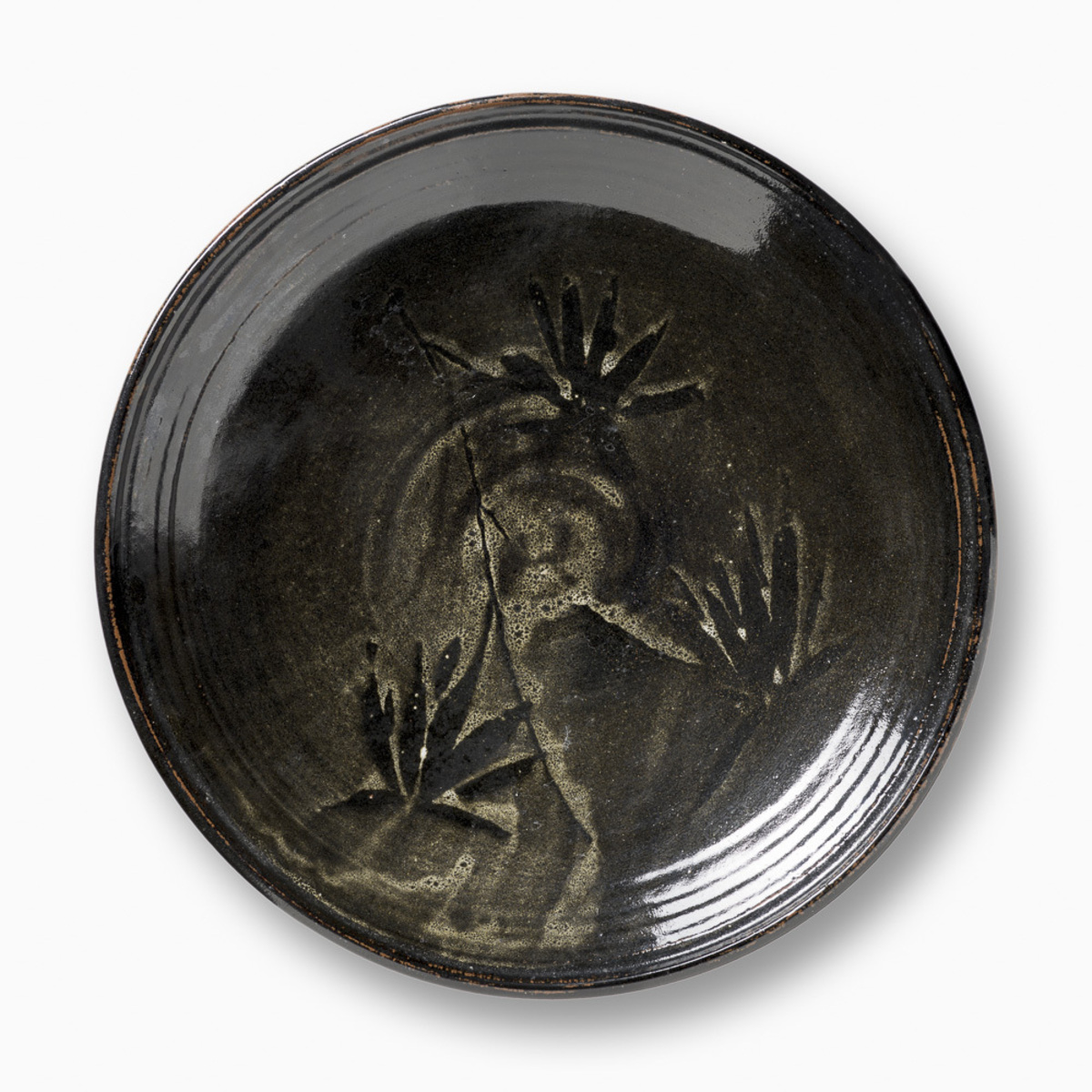 Large and Deep Charger (Platter), Black Tenmoku Glaze and White Frond Images