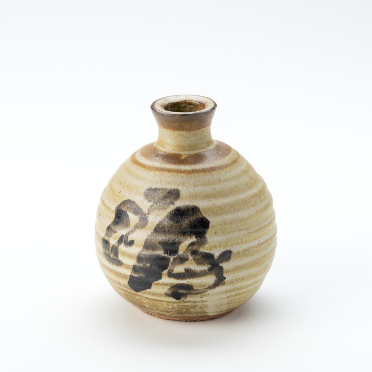 Globular-shaped Vase with Moulded Rings and Calligraphy Decoration