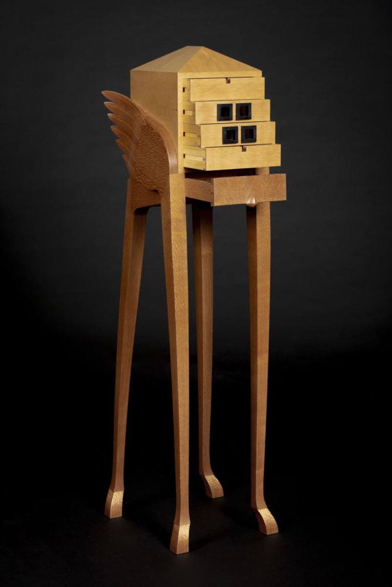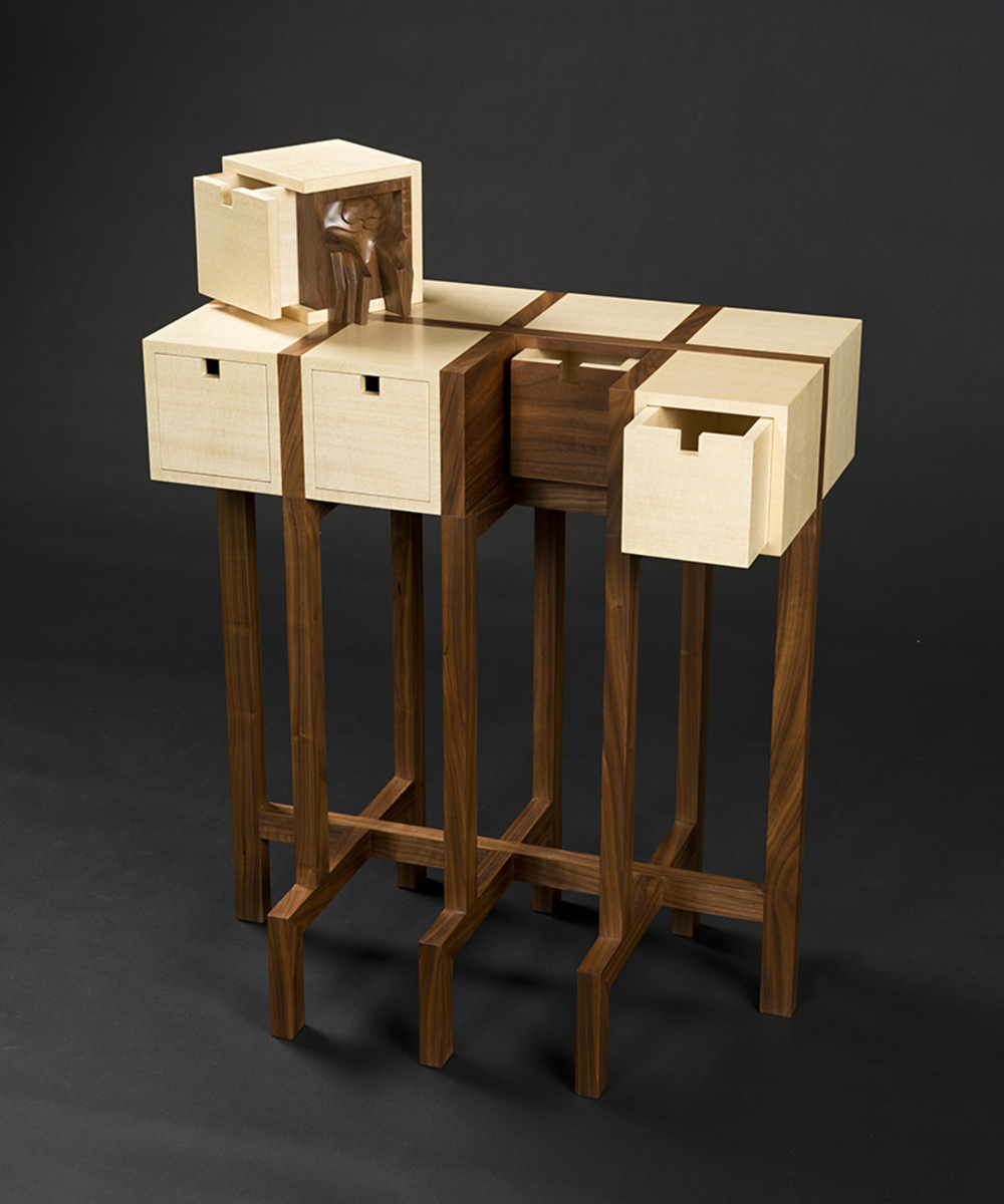 Queensland Silky Oak, Huon Pine veneer, glass