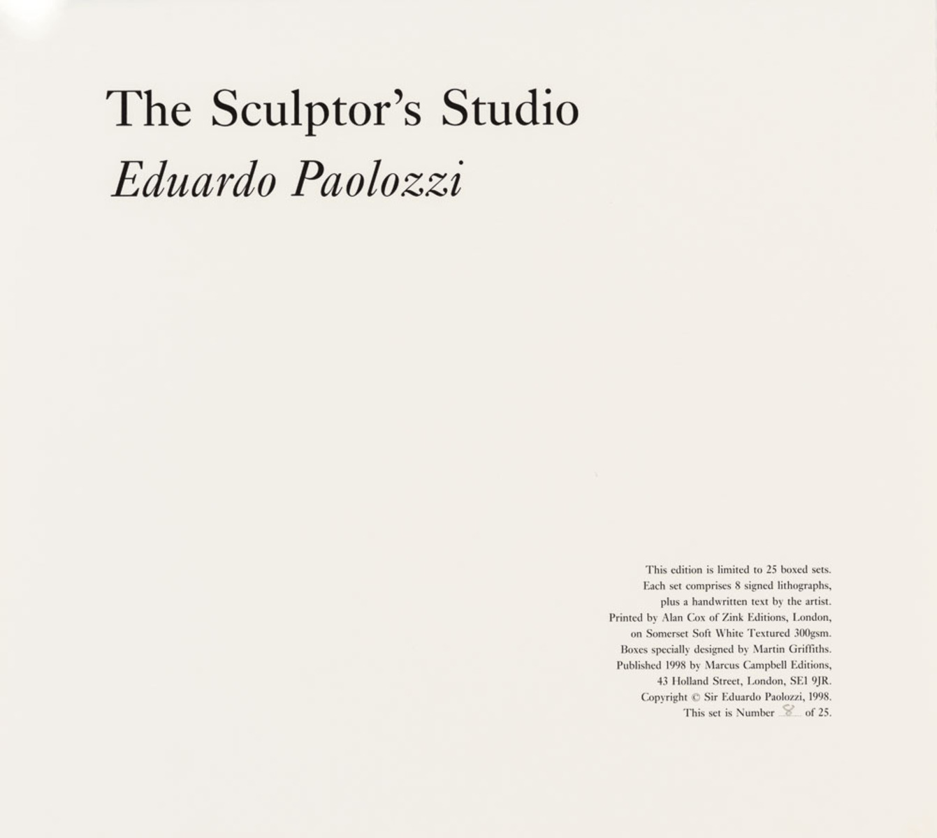 The Sculptors Studio. Limited edition 25 box sets, comprising of 8 signed prints. Printed by Alan Cox of Zinc Editions, London